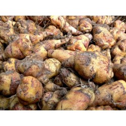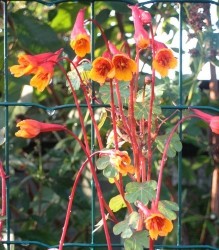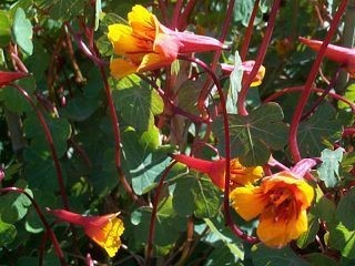 Een typisch knolgewas uit het Andesgebergte (Peru), die ook nog eens uitgroeit tot een fantastisch sierlijk gewas! Bij ons is de plant in toenemende mate winterhard, hoewel bij vorst knollen en blad goed beschermd moeten worden. Culinair komt steeds meer aandacht voor dit veelzijdige gewasje: de knollen zijn rauw te snipperen door de sla voor een pittige touch. Het blad en de bloemen hebben een zachte tuinkerssmaak en zijn een sieraad in elke salade. Na enige dagen onder zonlicht worden de knollen wat minder pittig. Verder kunnen de knollen menig hutspotje of roerbakgerecht op smaak brengen. De rankende plant heeft gelobd blad, dat verder sterk lijkt op het blad van het familielid: de Oost-Indische Kers. ‘Ken Aslett’ geeft prachtige bloei vanaf september geel met rode trompetbloemen. Typerend voor dit ras zijn de crèmegele knolletjes met rode streepjes onder de ogen. Oogst de knollen laat, ze ontstaan aan het eind van het groeiseizoen.