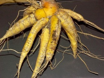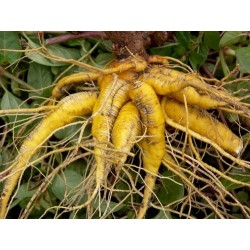 Vanaf 1960 is deze Zuid-Amerikaanse knolgroente herontdekt door Julio Rea, die ze in cultuur vond bij Indianen in zijn land Bolivia. Later (rond 1970) ontdekte hij ze ook in Ecuador en in Peru (1987) zijn ze ook aangetroffen. Een bijzonder gewas dat (in tegenstelling tot aardappels) ook groeit boven de 2700 m. Deze onovertroffen plant groei overigens in onze Lage Landen fantastisch! De plant kan uitlopers maken tot ruim 2 meter lengte. Het overhouden is voor de kwekers nog een beetje zoeken, maar de planten groeien gemakkelijk uit tot forse knoldragers. We hopen ook nog eens de zaden (lichtkiemers!) te kunnen kweken.