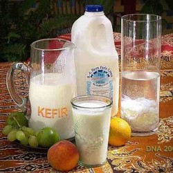 Kefir-melk is een probioticum en zeer gezond voor ons lichaam. Kefir is een fris zure zuiveldrank welke ontstaat door kefirpoeder toe te voegen aan melk. Hierdoor begint de melk te fermenteren. Door deze fermentatie is het een licht alcoholische drank (0,1 – 0,3%) en is het dikker dan melk. Kefir bevat diverse gisten (bijvoorbeeld Saccaromycesunisporus, Kluyveromycesmarxianus) en rechtsdraaiende bacteriën (o.a. lactobacilluscaucasus, kefyr) welke in harmonie met elkaar samenleven en zorgen voor het fermentatieproces.
