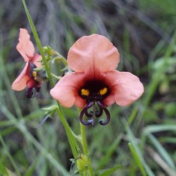 Er is iets mysterieus aan dit bijzondere, Zuid-Afrikaanse bloeiertje! De zalmroze bloemblaadjes geven een lieflijke aanblik, maar het hart en de gekrulde stampers en meeldraden lijken wel een boosaardig insect te imiteren! Vast een lokkertje voor het insect, dat deze bloem wil lokken voor de bestuiving. De bloemetjes zijn 1,5 cm in doorsnee en het compacte plantje wordt 20-30 cm hoog.