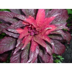 Een prachtige explosie van bladkleuren! De plant groeit eerst met chocoladebruin (vrij langwerpig) blad op tot een slordige 50-90 cm hoog om te “ontvlammen” in een toef bladeren aan de top van felrode kleur. De bloeistaartjes zijn bescheiden aanwezig.