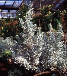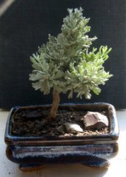 Een wilde meerjarige plant uit de Californische woestijn. Bij ons een prachtige eenjarige bladplant ter afwisseling van bloeiende planten. De vrij kleine, witgrijze blaadjes glanzen in de zon! Na een buitje regen komt een heerlijk kruidige geur vrij, die overigens nog sterker is door branden, het kruid wordt dan ook verwerkt in wierook. De indianen branden (smudgen) dit kruid voor rituele reiniging. Net als bv. Pelargonium kan dit plantje vaak een winter overleven, zeker vorstvrij. Door snoeien ontstaat een leuke bonsai!