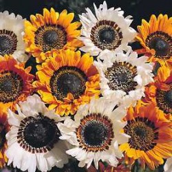 Deze zonminner bij uitstek geeft prachtige oranje en witte bloemen. Met een diameter van 10 cm, de uitnodigende open bloemvorm en het prachtig donkerpurperen hart doet de bloem sterk denken aan een kleine zonnebloem. Het gelobde, zilvergroene blad vormt de basis voor deze sterke tuin- of potplant. Hoogte 60 cm.