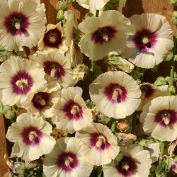 Door actief te kruisen en selecteren wist een team van Thompson & Morgan deze prachtige serie enkelbloemige stokrozen te kweken! Naast enkelbloemig werd gelet op zuivere kleuren, grote bloemen met prachtige donkere of juist lichte harten, tweekleurig dus.