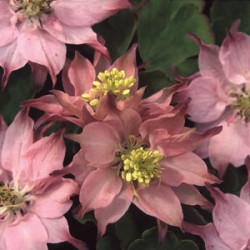 Grote, wijduitstaande, soms halfdubbele bloemen. De gelijkenis met een clematisbloem is zo frappant, dat sommige mensen de stengel volgen om te zien bij welk blad het hoort... De kleuren, die u kunt verwachten: roze, wit en blauw. De bloemen hebben geen spoortjes aan de achterkant. Een zeldzame verschijning! Hoogte 60 cm.
