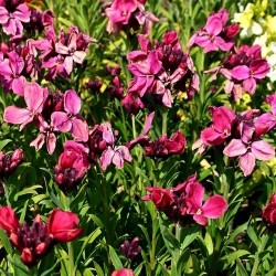Muurbloemen danken hun naam aan de spontane ontkieming op afbrokkelende (sloop)muren en/of de veelvuldige aanplant aan de voet van een zonnige muur. Ze houden dus van zon en vooral niet te nat! Op zo’n plek zaaien ze zich uit, de oude planten op tijd terug knippen en iets aanaarden geeft ook vaak hergroei. Een zeer geliefde kleur is deze wijnrode tot rozerode muurbloem. De zoete geur is ieder jaar weer genieten! Hoogte 50 cm.