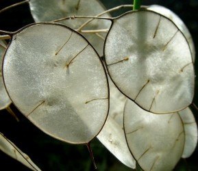 Een vroege bloeier met special allure: de witte- en donkervioletbloeiende Judaspenning kende ik al jaren, maar deze licht-blauwviolette is werkelijk een verrassing! De bloemen lijken licht te geven in de schemer en in de zon schitteren ze de zomer tegemoet! Teel ze apart van de andere kleuren om deze licht tint te behouden. Uiteraard volgen na de bloei de bekende zaadvruchten in de vorm van een munt: na droging kunnen de buitenvliezen voorzichtig worden verwijderd en komt het zilverkleurige tussenschot zichtbaar.