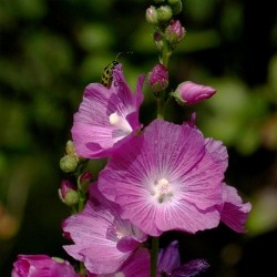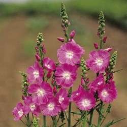 Deze zonminner is evenals de bekende stokroos een telg van de kaasjeskruidfamilie. Violetroze bloemen met een wit hartje bloeien in ranke trosjes. Afwijkingen in kleur komen voor: lichter en donkerder... De hoogte is maximaal 1 meter hoog, zowel het blad als de bloem is eetbaar van deze plant! Bijen en vlinders zijn dol op de bloemen, een goede drachtplat dus.