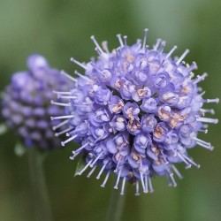 Steun de verspreiding van deze prachtige scabiosa-achtige. De plant staat nl. op de rode lijst vanwege sterke afname in de natuur. Zoals alle verwanten is de bloem bolrond met afgeplatte onderkant. De bloei is rijk, van VII-X, op 30-90cm hoogte, in helderblauwe kleur. Geef ze een vochtige, niet te kalkrijke plek. Vlinders zijn er dol op. De Engelse naam herinnert aan een oude sage: de duivel was zo kwaad dat deze plant beschermende en genezende kracht heeft/had, dat hij een hap uit de wortels nam (nu nog zit er vaak een rare bocht in de wortel) en vervolgens op de loop ging…
