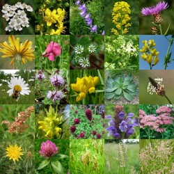 De bloeiende planten zijn: Duizendblad, Welriekende Agrimonie, Barbarakruid, Akkerklokje, Knoopkruid, Gewone Hoornbloem, Glad Walstro, Graslathyrus, Veldlathyrus, Herfstleeuwetand, Wilde Margriet, Gewone Rolklaver, Polei, Smalle Weegbree, Brunel, Grote Ratelaar, Veldzuring, Grote Pimpernel, Hemelsleutel, Gele Morgenster en Rode Klaver. Wildbloemen groeien meestal samen met grassen, vaak komen die vanzelf “aanwaaien”, maar we geven dit mengsel alvast 20% van de volgende 3 wilde grassen mee: Reukgras, Kamgras en Veldbeemdgras. Hetzelfde mengsel zonder gras vind je onder nummer 613045. Dosering: 2-4 gram voor 1 m². ZaaimethodeZaaien: maart-juni. Eerst de grond kaal maken en goed fijn harken, vervolgens de zaden (evt. vermengd met droog zand) gelijkmatig uitstrooien en licht inharken. Tenslotte aandrukken met plank, hand of wals. Leveringsmaandenhet gehele jaar