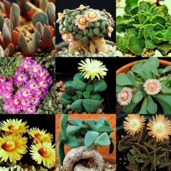 De Zuid-Afrikaanse flora is rijk aan vetplanten, dit geslacht Aloinopsis is zo’n stengelloze succulent, familie van het bekende ijsbloemetje (Mesembryanthemum). Klein maar fijn, diepe wortels met verrassend mooie bloei... Een lichte nachtvorst verdragen de plantjes, als ze maar niet nat staan, het is een echte droogte- en zonaanbidder!