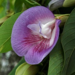 Dit fraaie Braziliaanse plantje wordt in de tropen een boom en zal bij ons in de winter naar binnen moeten. De beloning is (na enkele jaren) een fantastische bloei van hangende trossen met kelkvormige, lichtlila bloemen. De naam Clitoria refereert aan deze vorm: de clitoris.
