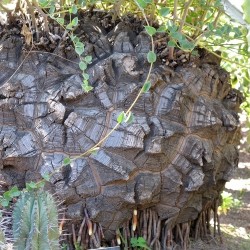 De namen voor deze plant zal je snel duidelijk zijn: aan de basis ontstaat een verhouting met prachtige inkepingen zoals het schild van een schildpad! Vanuit de basis groeien rankjes klimmend langs stokken of touwtjes met hartvormige blaadjes en gele bloemetjes. Deze Zuid-Afrikaanse plant was ook een voedingsbron voor de Khoisan omdat de basis veel zetmeel bevat. Behandel de plant als kamerplant en zet deze gerust in de zomer buiten. Af en toe sterft het blad af, dan wil de plant in rust, geef deze dan wat minder water.