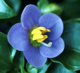 Grappig kamerplantje, gemakkelijk te telen. De groeivorm is bolrond, tot een doorsnee van 30 cm. Tussen de massa glanzende blaadjes verschijnt een grote massa ronde, helderblauwe bloempjes met een iets uitstekend geel hartje. Zaaien 1-5 geeft bloei 4-9.
