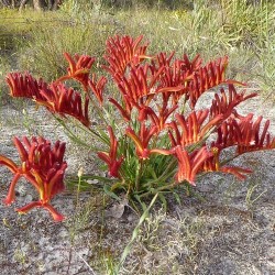 ZW-Australië, het Mediterrane deel dus. Een vrolijk lid van de familie der Kangaroepootjes met een compacte en gemakkelijke groei. Ideaal voor potten op een lekker warm plekje: de totale hoogte is maximaal 30 cm, de bloemen zijn geel, geel-oranje of rood.