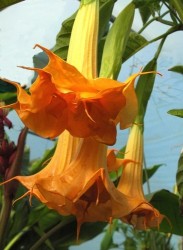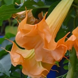Een onmiddellijk opvallende kuipplant door zijn 30 cm lange, hangende trompetvormige, dubbele, lichtoranje bloemen, die heerlijk geuren. Veel water en veel mest zorgen voor een enorm snelle groei en uitbundige bloei. Alle plantendelen zijn giftig, dus pas op voor kleine kinderen!