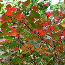 Een zeer fraaie heester met de mooiste herfstkleur van allen! Als je maar 1 plant in de tuin mag zetten voor de herfstkleuren, dan is dit een erg goede keuze... De hoogte na 10 jaar is 2,5 m. De stervormige, mild geurende bloemetjes zijn donkerrood en verschijnen als de hartvormige bladeren al in de mooiste herfsttinten verkleuren: in september en oktober!