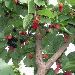 Een vruchtboom, die al eeuwen in cultuur is! En niet in de laatste plaats omdat moerbeien uit zaad uitstekende vruchtgevende bomen opleveren. De framboosachtige vruchten zijn heerlijk in desserts of jam. Het beste kennen we de boom als gastheer van de zijderups. Het grote gezaagde en (later) handvormige blad loopt laat in het voorjaar uit, ook de bloei is laat, dus geen bevriezing. Aan 1 boom komen mannelijke en vrouwelijke bloemen, die elkaar kunnen bestuiven (fertiel = zelfverdraagzaam = 1 plant is genoeg voor vruchtzetting). Door snoeien kan de plant als BONSAI, struik, stamboom of leiboom (bv. kandelaar of parasol) worden geteeld.