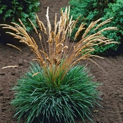 Naast het bekende Blauw Zwenkgras (673600) is dit een bekend en veel toegepast siergras met opvallend blauwgroen blad. Dit Fakkelgras heeft wat breder blad en bloeit iets hoger: 30-40 cm, het geheel toont dus wat robuuster dan zijn blauwe neefje. Geef ze een zonnige plaats en verbeter de kleigrond met wat potgrond en zand, ze houden hun mooie kleur in de winter.