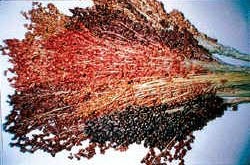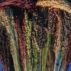 Het koren van de toekomst! Lees de hierna volgende beschrijving maar eens… In Afrika is dit gewas al vanaf 3000 v. Chr. (dus al 5000 jaar!) in cultuur, vanaf de 17e eeuw in Amerika bekend (meegenomen door zwarte slaven) en inmiddels het 5e gewas in de wereld! Een opsomming van de vele eigenschappen en toepassingen: het graan is glutenvrij(!), ontgiftigend (anti-oxidant), je kan het graan bakken, poppen, fermenteren tot mout (werkt dan als probiotica), gebruik als grutten of couscous en verwerken tot melasse of suikerstroop. Verder wordt in Afrika het graan voor bierproductie en het stro voor huizenbouw en verpakking (karton) gebruikt. Overtuigd? Dit polvormende grassoort vormt halmen in de kleuren rood, goud, zwart en kastanjerood met vele tussenkleuren. De enorme stengels worden ongeveer 200-250 cm hoog en de plant wortelt diep, wat goed is voor de grondstructuur.