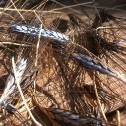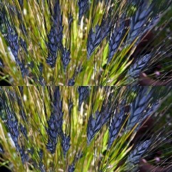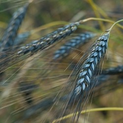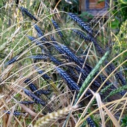 Zonder twijfel een van de mooiste emmertarwe-rassen op aarde met 4 rijen blauwgrijze zaden en lange, zwarte baarden. Het dorsen is door de harde kaf niet zo gemakkelijk bij dit oude ras, maar ach... geniet vooral van deze mooie tarwe op de tuin of in prachtige boeketten! Ze kunnen wel 2 meter hoog worden... Dit ras schijnt tot het begin van de 20e eeuw rond Utrecht veel geteeld te zijn. Omdat deze meegenomen is naar de VS, is de naam erg verbasterd, we kwamen zelfs deze namen tegen: Utregse Blauwe, Utrect Blue.