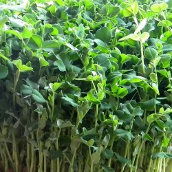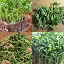 Ongelofelijk: zo fris en mals als peultjes en erwtjes, al vanaf 2-4 weken meerdere keren zijn deze jonge groeischeuten oogstbaar! Wij hebben uit 28 blinde smaakproeven de lekkerste uitgekozen en hebben gelet of stevige smaak, niet bitter en zo zoet mogelijk. Zaai ze lekker in een pot en laat ze jaarrond in de vensterbank of buiten ontkiemen. Ze kiemen al vanaf 5̊C en kunnen (mits niet te kort afgeknipt) meerdere keren geoogst worden. Meng de scheuten rauw door de sla, op een broodje gezond of kort in de roerbakpan als laatste toevoeging in wokgerechten.