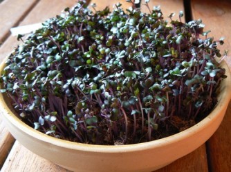 Dit soort wordt geteeld als microgroente (voor het jonge plantje met kiemblad of eerste gewone blad). Microgroente wordt op vochthoudend materiaal gekweekt (keukenrol, watten, aarde). Voor de ontkieming donker en warm, na de ontkieming licht en koeler. Groen met rode kiempjes met frisse koolsmaak.