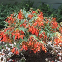 Pittig oranjerood! Deze zeer rijk bloeiende begonia (ook geschikt voor binnen) met hangende, kleine helderwitte bloemen, die doen denken aan die van de lidcactus. Natuurlijk is deze begonia heel geschikt voor potten en bakken. Hoogte: 30-40 cm met 10-50 cm “overhang”. Begoniabloemetjes zijn eetbaar en hebben een sprankelende smaak