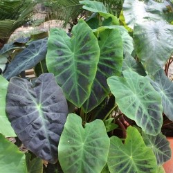 Fantastische bladerpracht! De plant groeit iets bescheidener dan de meeste Taro’s dus passen goed op een kleinere plek. De knol overleeft vele winters, een beetje extra dek helpt daarbij, en elk jaar loopt de plant uit tot een volle en exotische schoonheid. Vaak ontstaan op het blad donkerte vlekken, waardoor de groene nerven sierlijk oplichten!