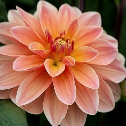 De koning van de zomerbloeiende knollen! De grote verscheidenheid aan kleur en vorm, de adembenemende volmaakte vorm en de goede houdbaarheid op de vaas maakt deze bloem zo populair! Een zgn. Decoratiefbloemig Waterlelie Type, d.w.z. met extra brede lintbloemen. Wonderschone, licht zalmroze tinten. Sterk voor de snij. Hoogte 110 cm.
