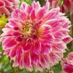 De koning van de zomerbloeiende knollen! De grote verscheidenheid aan kleur en vorm, de adembenemende volmaakte vorm en de goede houdbaarheid op de vaas maakt deze bloem zo populair! Een zgn. Decoratiefbloemig Type, d.w.z. met brede lintbloemen. De zeer gevulde bloemen zijn pittig lilaroze met witte randen. Hoogte 90 cm.