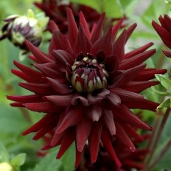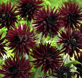 Een zgn. Cactusbloemig Type, d.w.z. met smalle tot zeer smalle, puntige lintbloemen. De bloemvorm en kleur is gelijk aan mijn favoriet ‘Chat Noir’: spitse lintbloemen in zwartrode kleur, de bloemen zijn ongeveer de helft zo klein. Ideaal voor de snij of voor een uitbundige bloei in de tuin of in potten.