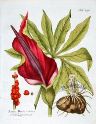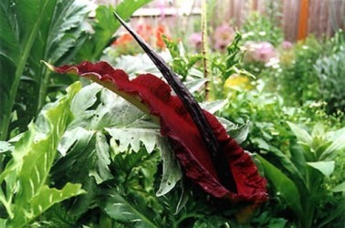 Stel je voor: het fraai gedeelde blad groeit op tot een hoogte van 80-100 cm, daarboven begint de bloeiwijze: een bloeischede van wel 40 cm lang in een fluwelige diep bruinpaarse kleur. Plant ze 15 cm diep en geef ze een winterlaagje. We leveren grote knollen voor een jaarlijks succes! Het eerste jaar moet de bol zich settelen, geef ze vruchtbare grond, maar niet te nat.