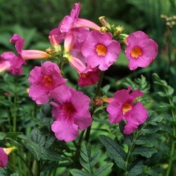Een gemakkelijke tuin- of potplant met fris en mals, varenachtig blad die vanaf de zomer gaan bloeien op stengels van 40-60 cm hoog. De bloemen hebben een fraaie trompetvorm in lilaroze kleur. We kochten extra grote wortelstokken zodat je een robuste plant kunt verwachten. Geef de planten een flinke laag winterdek, goed gedraineerde grond, dan overleven ze vrijwel zeker de vorst.
