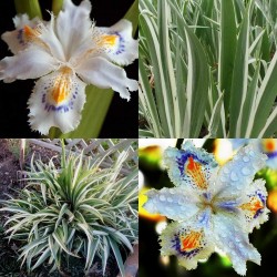 Op een hoogte van 50 cm bloeien de fantastische witte bloemen met warmgeel spoor op de “lip” en paarse stralen rondom het geel. We leveren de bontbladige en de groenbladige variëteit. Ook zonder de prachtige bloemen geeft het blad een frisse aanblik in de tuin! Geef ze een plekje in de zon of halfschaduw en zorg voor een humeuze, vochthoudende grond.