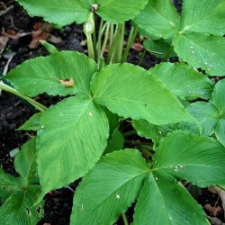 Het grote driedelige blad vormt de basis voor deze sterke schaduwplant. Op een hoogte van 50 cm verschijnen de groene aronskelkachtige bloemschede met extreem lange bloeikolf. Deze plant komt uit Japan en Zuid-Oost China en settelt zich gemakkelijk in de tuin.