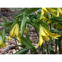 Een echte bosplant uit Noord-Amerika, bij ons winterhard. Geef ze een humeus, schaduwrijk plekje. De bladopbouw is fris en lijkt fragiel, maar is stevig genoeg om de vele gele hangende, klokvormige bloemen te herbergen.