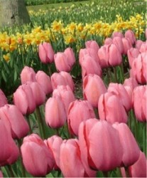 Hoge tulpen zijn weer helemaal terug! De beroemde tulpenkweker Lefeber uit Lisse ontwikkelde deze zeer grootbloemige tulpen, die nog steeds menigeen verbaast! Prachtige, grote roze tulpen. Erg geliefd bij bloemisten, ze worden als supertulpen verkocht. Een geweldige combinatie met lichtblauwe Boshyacinyten! Hoogte 60 cm.