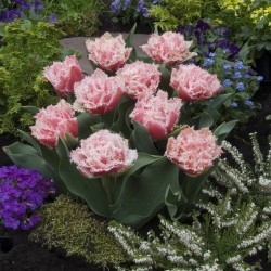 Ouderwetse "bewerkte" tulpen zijn weer helemaal in en exclusief! Een bijzonder speels effect: de bloemen zijn langs de randen gekarteld en iets lichter getint. EXCLUSIEVE TULP! Wonderlijk zacht van kleur en dubbelbloemig…