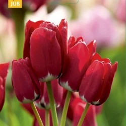 Er komen steeds meer kweekvormen van deze interessante tulp. Uit één bol komen meerdere bloeistengels, lange bloei! Zwierige bloemstelen met fluweel(donker)rode bloemen.