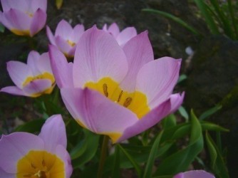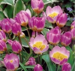 Oorspronkelijk "wilde" soorten (ook wel Tulipa species genoemd), vaak blijvertjes in de tuin, kleinere bloemen. Lilaroze, ronde bloem met gele basis.