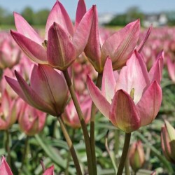 Oorspronkelijk "wilde" soorten (ook wel Tulipa species genoemd), vaak blijvertjes in de tuin, kleinere bloemen. Heeft licht zilverroze bloemblaadjes en de rand van elk bland is dieper roze.