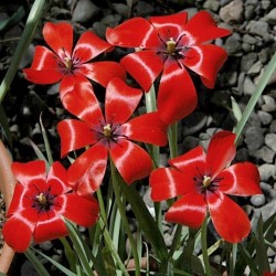 Oorspronkelijk "wilde" soorten (ook wel Tulipa species genoemd), vaak blijvertjes in de tuin, kleinere bloemen. Een fijngebouwd wild tulpje met rode bloemen en pikzwart hart. Een bolrond tulpje dat jarenlang terug komt in bloei, mits ze op een warm en ‘s zomers snel drogend plekje staan.