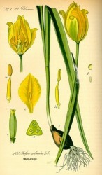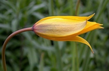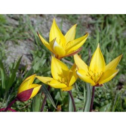 Oorspronkelijk "wilde" soorten (ook wel Tulipa species genoemd), vaak blijvertjes in de tuin, kleinere bloemen. Warmgeel met roodgroene buitenstreep, kan goed tegen schaduw. De zaaddozen zijn deco!