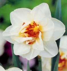 Dubbelbloemig: grootbloemig met gevulde harten, individuele schoonheden! Wit met oranje hart.
