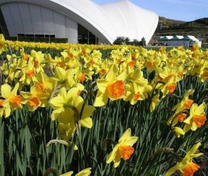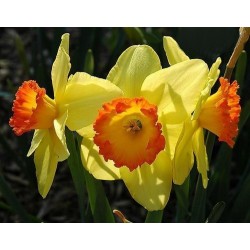 Grootkronig: geeft grote, bekervormige trompet, 1 (grote) bloem per stengel. Warmgeel met pittig oranjerood trompetje.