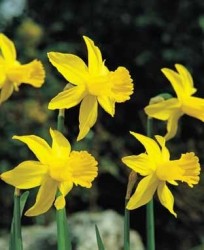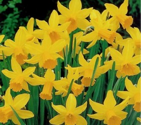 Cyclamineus-type: houden van vochtige grond, korte stengels, kleine bloemen. Dit bekende rasje is heldergeel met smalle trompetjes.