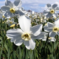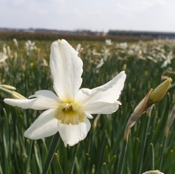 PRIMEUR! We troffen dit nieuwe ras in 2019 aan op de proefvelden van JUB-Holland. Wat een fantastisch, helderwit en slank narcisje is dit! Sterk op de vaas en lang bloeiend in de tuin. De bloei valt vaak in de 2e helft van april.