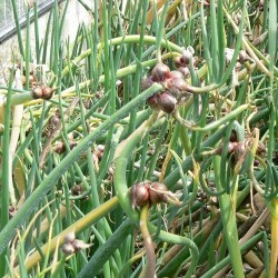 Een merkwaardig en historisch uitje! De bolletjes vormen in de grond nieuwe aanwas (klisters) en bovenaan de stengels ontstaan naast soms enkele bloemetjes ook “luchtbolletjes”, die vervolgens ook weer uitlopen. Een groei in etages dus. Naast boeiend is dit winterharde uitje ook lekker pittig in salades.
