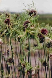 Sieruien (of Sierlook) zijn bijzonder populair! Ze bloeien vanaf mei, een tijd waarin de tuinstoelen naar buiten kunnen! Na enig geduld toch weer terug in ons sortiment. Vanuit de donkerpaarse, compacte ronde bloemtrosjes steken willekeurig de kronkelige, groene uitsteeksels uit. Net een wapperende haardos! Hoogte 35-50cm.